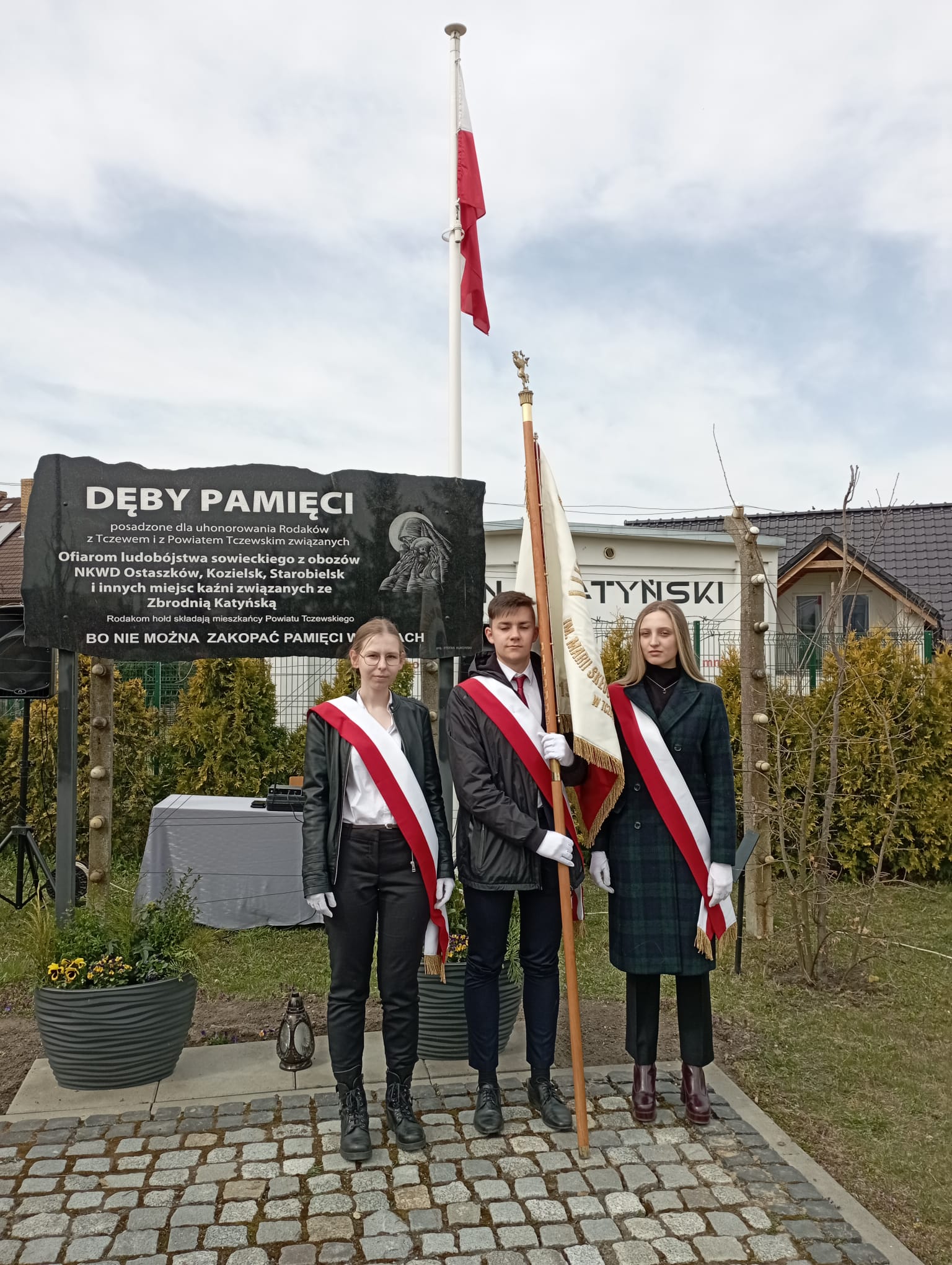 13 kwietnia obchodzimy Dzień Pamięci Ofiar Zbrodni Katyńskiej. O godzinie 8 odprawiono uroczystą Mszę Św. w kościele NMP Matki Kościoła na Suchostrzygach, o 12 odbyło się spotkanie przy Tczewskim Panteonie Katyńskim, przy II LO w Tczewie. Naszą szkołę na tych uroczystościach reprezentowały pani dyrektor Jadwiga Andrzejewska i pani wicedyrektor Anna Kleinschmidt oraz poczet sztandarowy: Joanna Górska z 3cg, Małgorzata Mokwa z 3dg i Mateusz Dzięgielewski z 3eg.