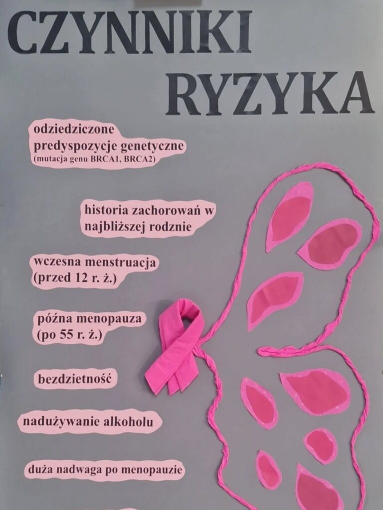 W naszej szkole, od pierwszych dni bieżącego miesiąca, trwają działania profilaktyczne mające na celu zwiększenie świadomości społeczności szkolnej na temat znaczenia badań kontrolnych oraz troski o własne zdrowie. Szkoła przyłącza się w ten sposób do kampanii „Różowy Październik”, promując wiedzę, profilaktykę i solidarność z osobami dotkniętymi chorobą