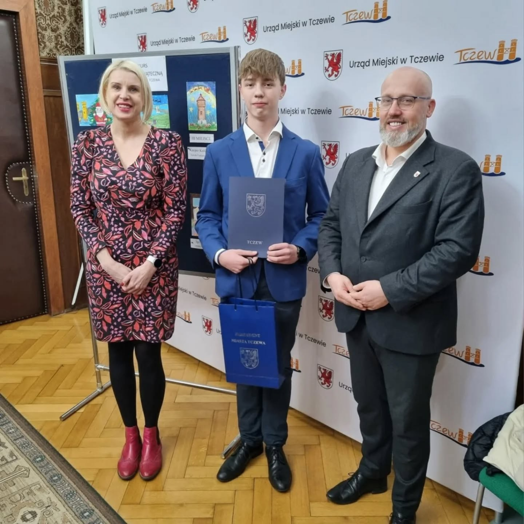 Ewa Winsławska – uczennica klasy 1c oraz Filip Ceglecki – uczeń klasy 1d otrzymali nagrodę Prezydenta Miasta Tczewa dla uzdolnionych uczniów i studentów w ramach Programu Wspierania Edukacji Uzdolnionych Dzieci i Młodzieży.