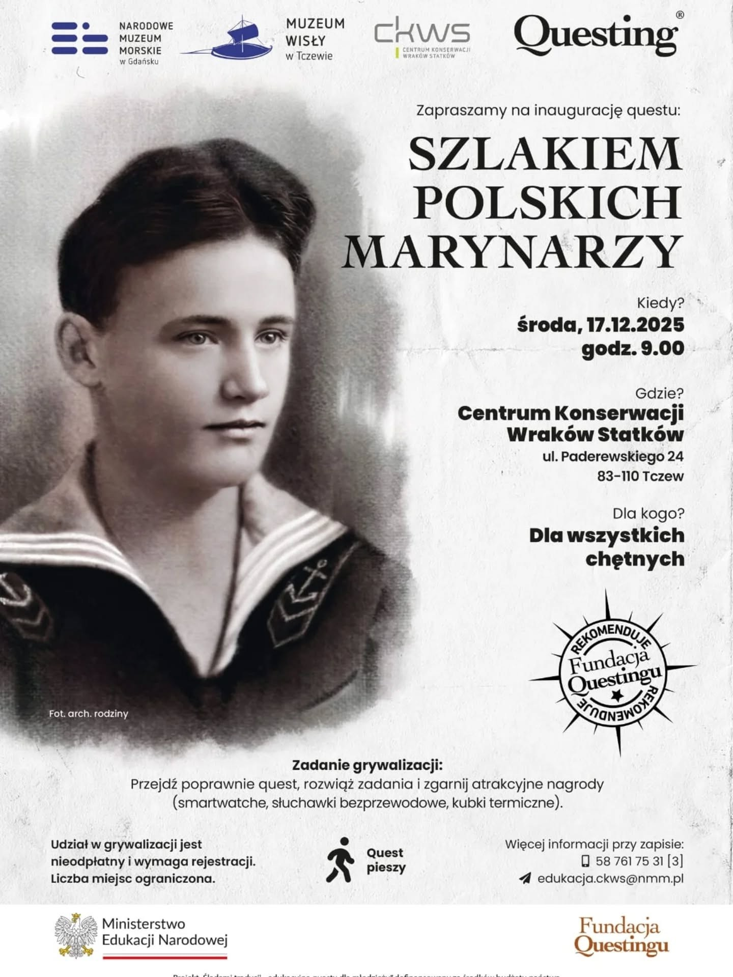A wszystko to dzięki współpracy z Centrum Konserwacji Wraków Statków. Bardzo dziękujemy Pani Aleksandrze Grońskiej za inicjatywę i zaproszenie szkoły do wzięcia udziału w stworzeniu Questu „Szlakiem Polskich Marynarzy” – rodzaju gry miejskiej, która wprowadza nas w historię naszej szkoły z czasów, gdy mieściła się w niej Szkoła Morska. Narratorem Questu jest jeden z jej uczniów. Gra toczy się na terenie Tczewa, gdzie ślady Szkoły Morskiej zostały do dziś. Projekt powstał przy pomocy Fundacji Questing a w projekcie brała udział klasa 3a. Dziękujemy 🤩