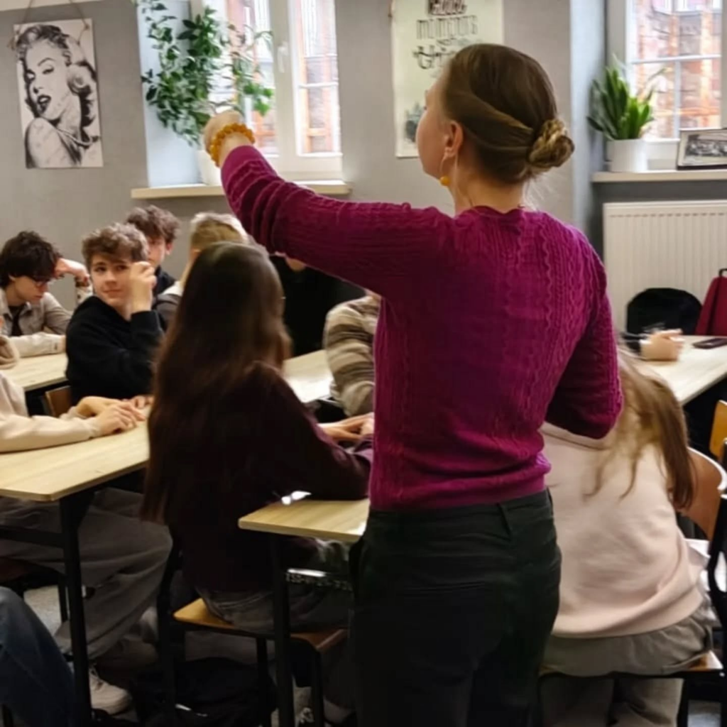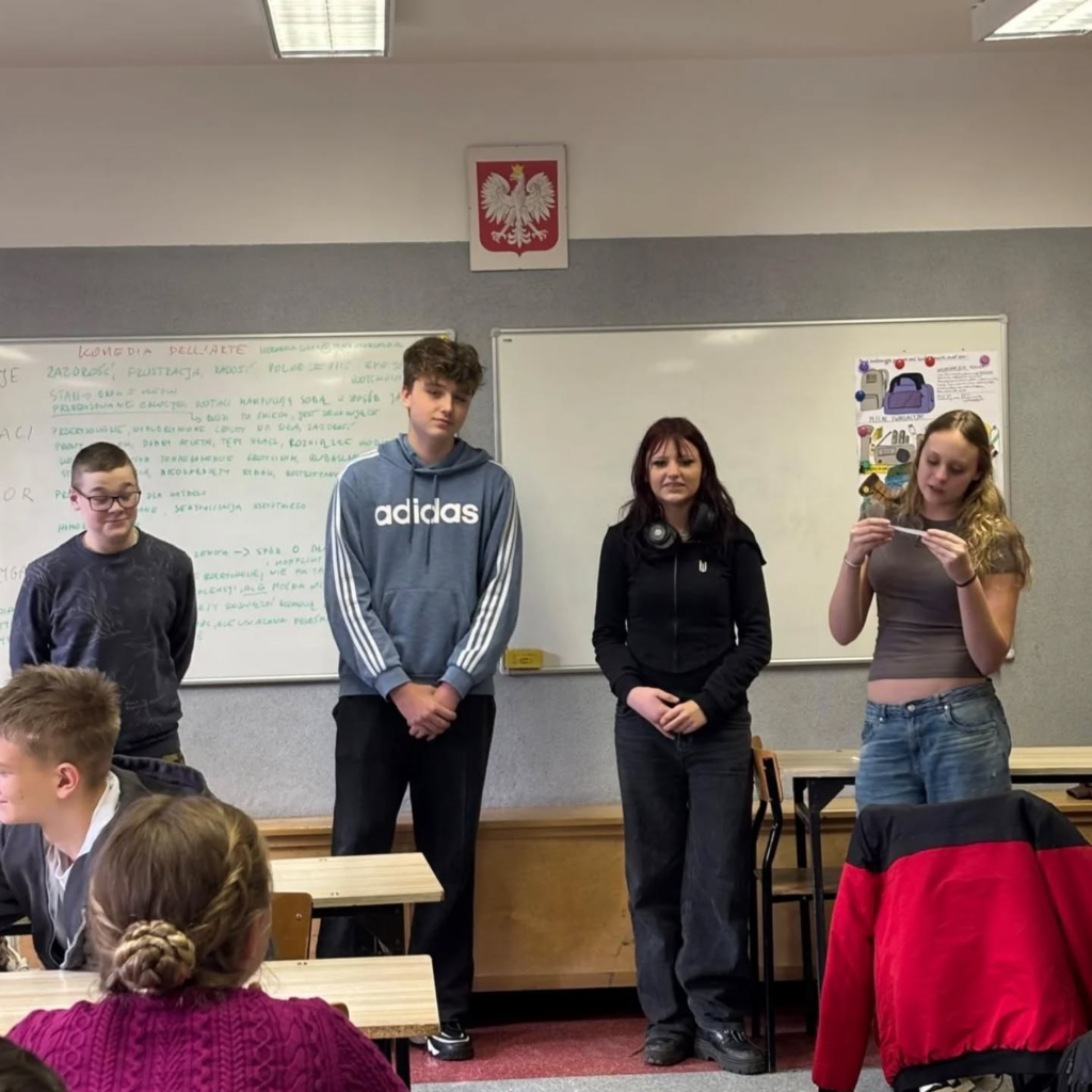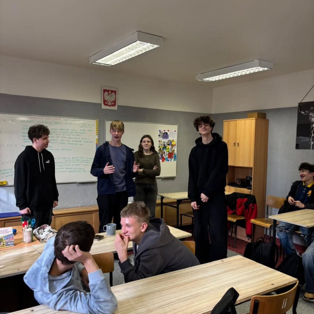“Awantura w Chioggi” to spektakl, na którym niedawno były klasy Id i Ie. Kilka dni po spektaklu Pani Weronika Łucyk, edukator teatralny z Teatru Wybrzeże, przeprowadziła warsztaty dla młodzieży. Pani Weronika jest stałym gościem w naszej szkole od wielu już lat.