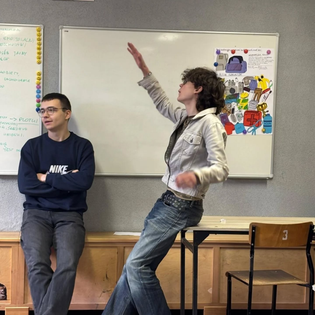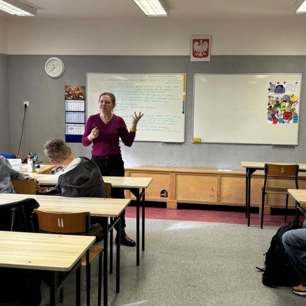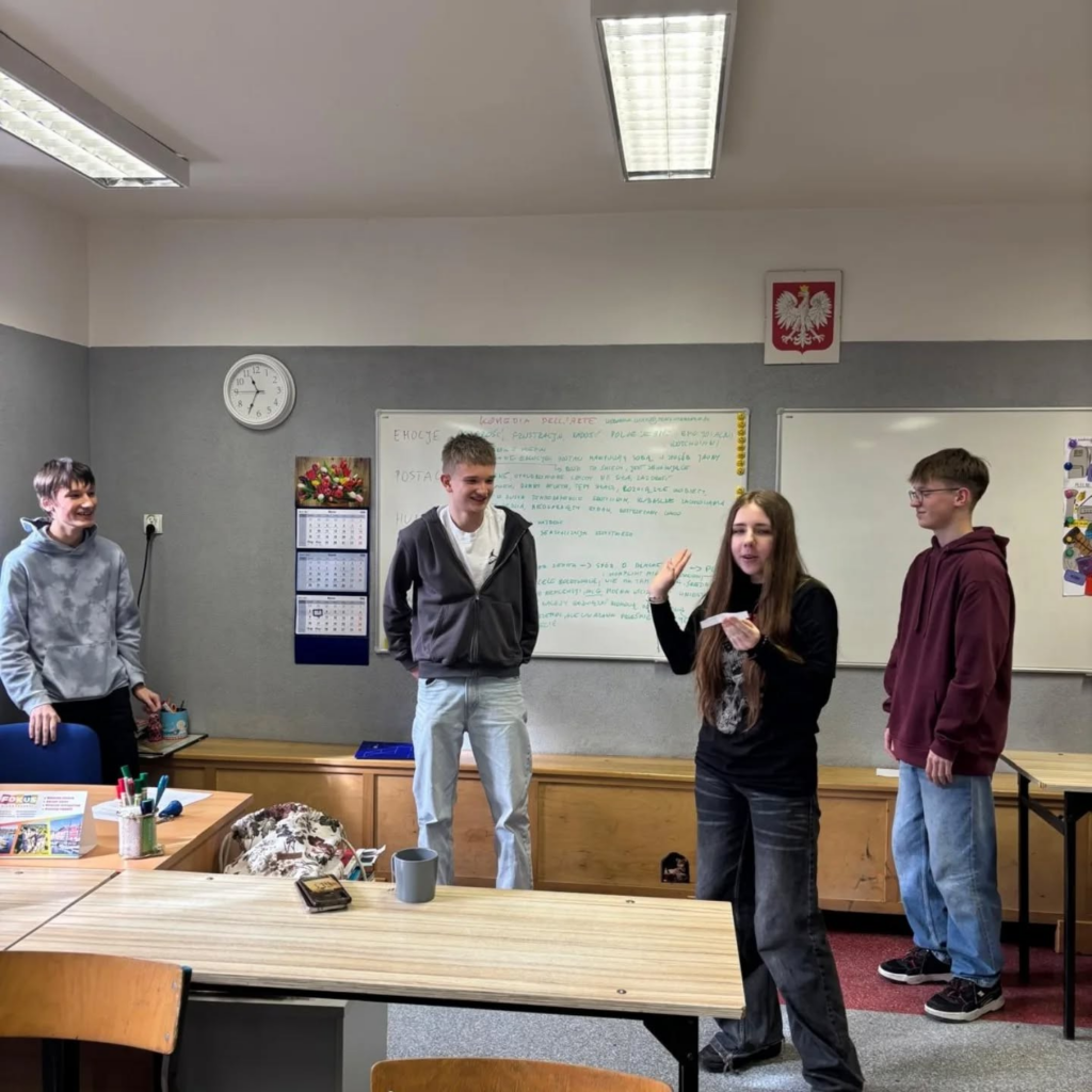 “Awantura w Chioggi” to spektakl, na którym niedawno były klasy Id i Ie. Kilka dni po spektaklu Pani Weronika Łucyk, edukator teatralny z Teatru Wybrzeże, przeprowadziła warsztaty dla młodzieży. Pani Weronika jest stałym gościem w naszej szkole od wielu już lat.